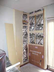 ![]() これから、リビング内壁の壁を取り壊していく作業を行います。 | ![]() 壁を剥がし、耐震補強工事を行います。 |